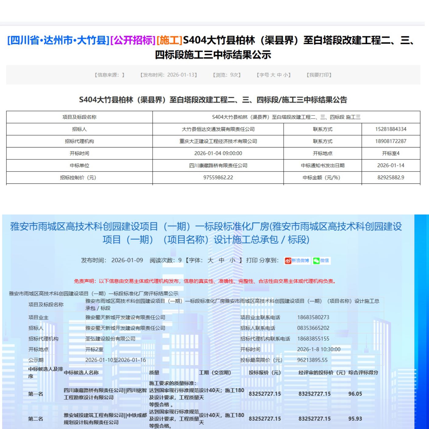四川康藏路橋有限責(zé)任公司成功中標(biāo)兩個(gè)重要…