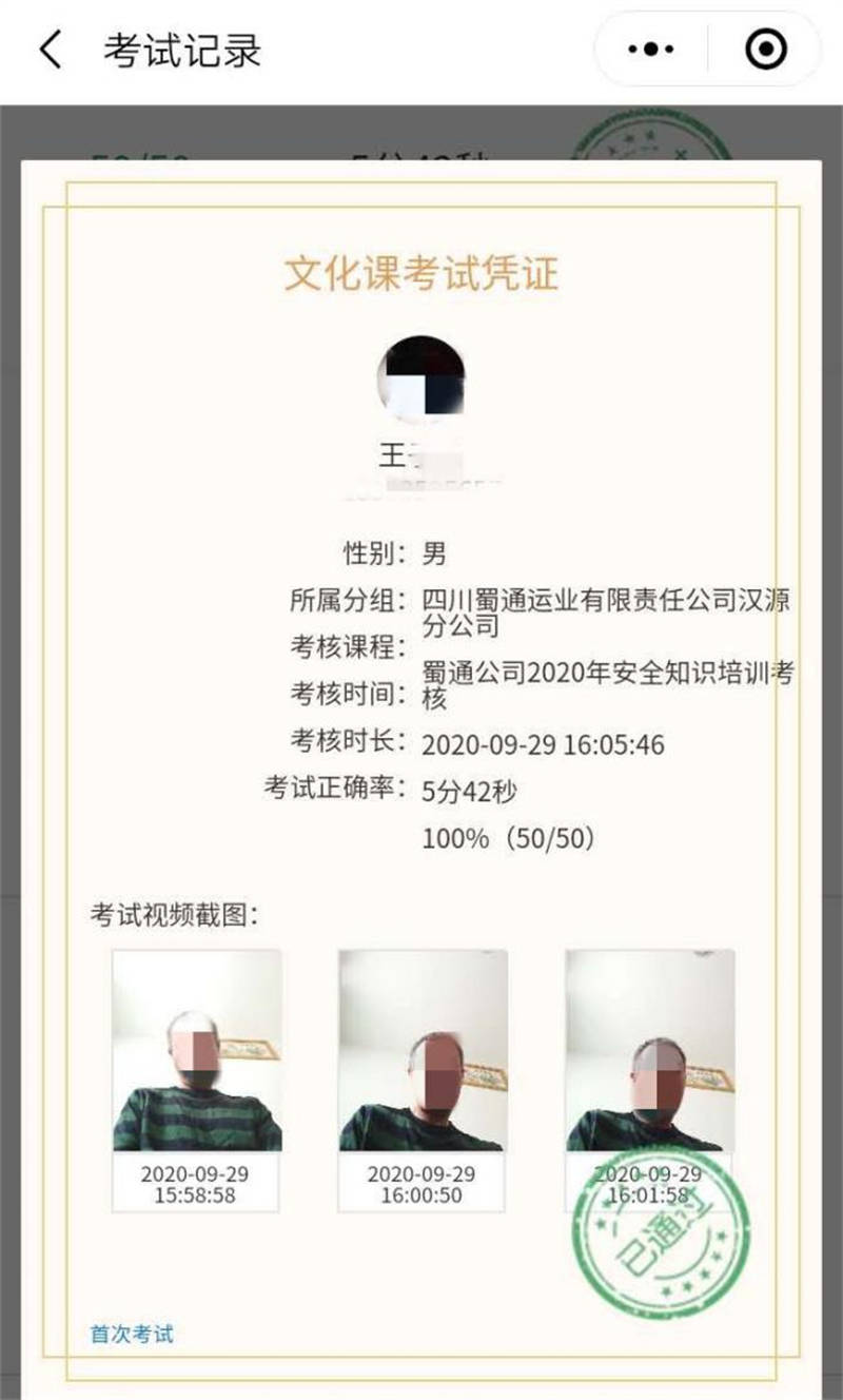 開(kāi)展線上安全培訓(xùn)。疫情常態(tài)化防控期間,積極探索培訓(xùn)新方式,通過(guò)微信小程序線上對(duì)駕駛員開(kāi)展安全培訓(xùn)。為確保線上培訓(xùn)的質(zhì)量和真實(shí)性,增設(shè)了人臉識(shí)別、電子簽名、登錄驗(yàn)證等技術(shù)手段,培訓(xùn)課程包括了法律法規(guī)、行業(yè)規(guī)定、典型事故案例、職業(yè)道德、防御性駕駛技術(shù)等內(nèi)容。截至目前,418名大客車(chē)駕駛員、72名安全管理人員完成了線上安全培訓(xùn),合格率達(dá)100%。