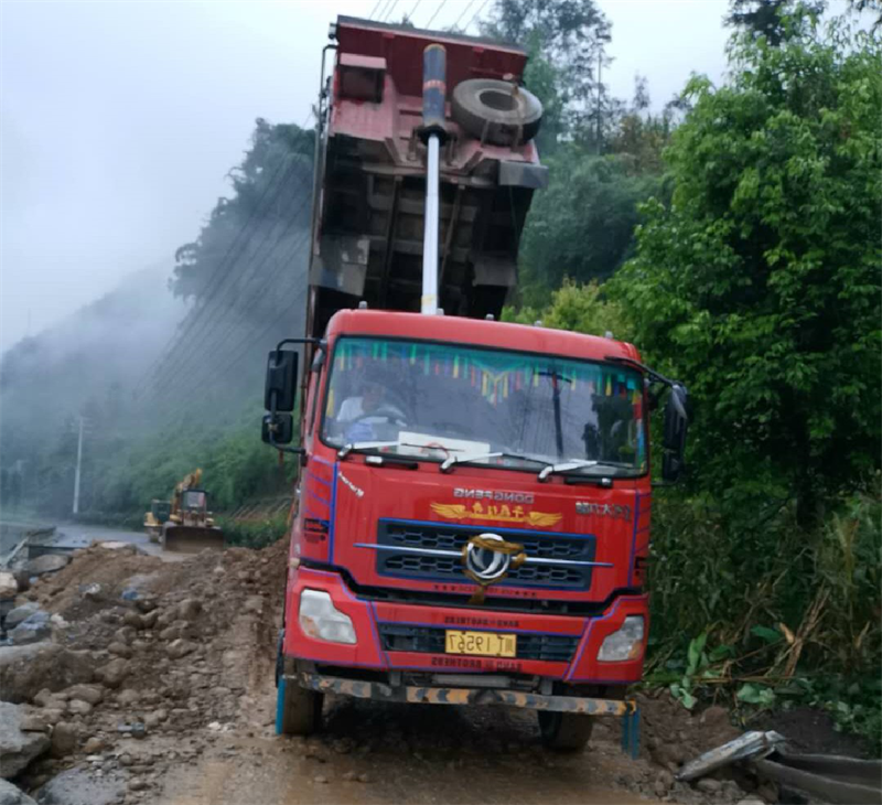 興寶公司接到寶興縣政府搶險指令后,立即啟動應(yīng)急預(yù)案,執(zhí)行董事彭清翔第一時間趕赴現(xiàn)場,迅速組織12人的搶險突擊隊,攜帶挖掘機4臺、重型運輸卡車6臺,連夜對受損路段進行搶險施工,運輸投放巨石52車、連砂石13車,共計2700余噸。經(jīng)過近10小時的連續(xù)奮戰(zhàn),成功排除險情。