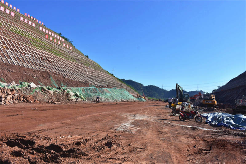 目前,金雞關(guān)隧道左側(cè)隧洞全部拆除完畢,已回填并壓實,工人們正在對開挖后的高邊坡繼續(xù)進行支護。支護完成后的高邊坡方格網(wǎng)內(nèi)將覆蓋一層種植土,撒上草籽培育草坪,屆時將成為雨名快速通道一道亮麗景觀。