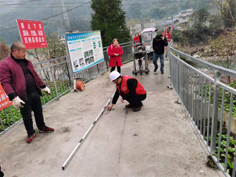 為深入推進(jìn)黨史學(xué)習(xí)教育“我為群眾辦實(shí)事”實(shí)踐活動(dòng),11月26日,交建集團(tuán)佳岳公司組織4名檢測(cè)人員對(duì)天全縣小河鄉(xiāng)境內(nèi)2條農(nóng)村公路,1座鐵索橋開展混凝土路面厚度、橋墩加固強(qiáng)度等檢測(cè),全面把控道路質(zhì)量,提高群眾通行安全保障。