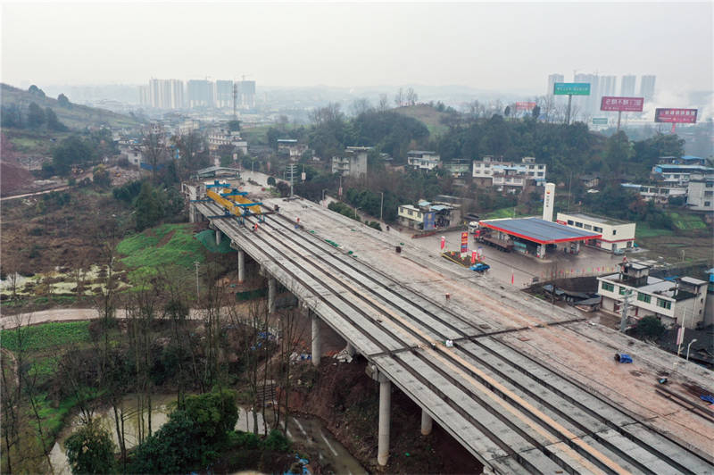 黑碾子大橋是雨名快速通道項目3座橋梁之一,另有成雅跨線大橋、丁家壩大橋。目前成雅跨線大橋已完成主橋掛籃拼裝,正在掛籃進行全封閉防護。丁家壩大橋及黑碾子大橋預(yù)制梁架設(shè)已全部完成,正在進行橋面系施工。橋梁建設(shè)有序推進,為項目如期建成通車打下堅實基礎(chǔ)。