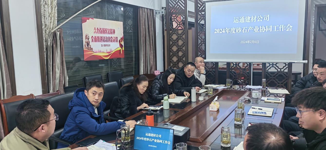 按照集團公司2024年工作部署,建材公司董事長李波組織召開2024年度砂石產(chǎn)業(yè)協(xié)同工作會,集團目標管理部負責人以及建材、丹石、云石、興寶公司班子成員、銷售部門負責人參加會議。會議就2024年度重點工作任務(wù)、市場拓展方向、產(chǎn)業(yè)協(xié)同等方面進行深入研討。