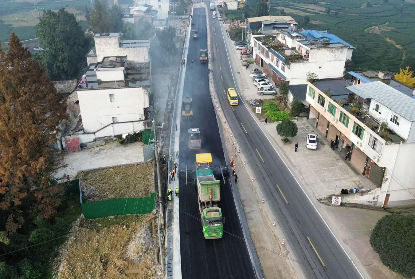 國道318線名山區(qū)黑竹(成都界)至雨城區(qū)多營段改建項(xiàng)目作為四川省重點(diǎn)項(xiàng)目,同時(shí)也是雅安“三區(qū)”同城化經(jīng)濟(jì)環(huán)線中北環(huán)線的重要組成部分,自開工以來始終保持高效推進(jìn)態(tài)勢(shì)。為實(shí)現(xiàn)2026年春節(jié)前主體工程貫通目標(biāo),近期,項(xiàng)目建設(shè)現(xiàn)場(chǎng)掀起“大干快上”熱潮,全體參建單位以“時(shí)不我待”的緊迫感沖刺節(jié)點(diǎn)任務(wù),各項(xiàng)工作取得突破性進(jìn)展。截至目前,項(xiàng)目累計(jì)完成投資24.95億元,完成產(chǎn)值17.6億元;路基、橋涵、隧道工程均完成90%以上,陸續(xù)進(jìn)入路面工程階段,前12公里改建段已建成通車。