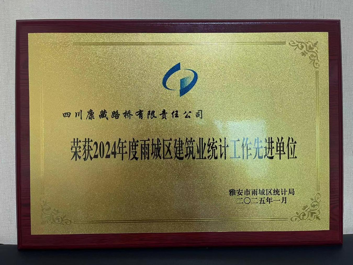 2025年1月,雅安市雨城區(qū)統(tǒng)計局授予四川康藏路橋有限責(zé)任公司“2024年度雨城區(qū)建筑業(yè)統(tǒng)計工作先進(jìn)單位”榮譽(yù)稱號。過去的一年,路橋公司積極配合統(tǒng)計工作,保障數(shù)據(jù)準(zhǔn)確及時,為雨城區(qū)建筑業(yè)統(tǒng)計工作的順利開展提供堅實的數(shù)據(jù)支撐。
