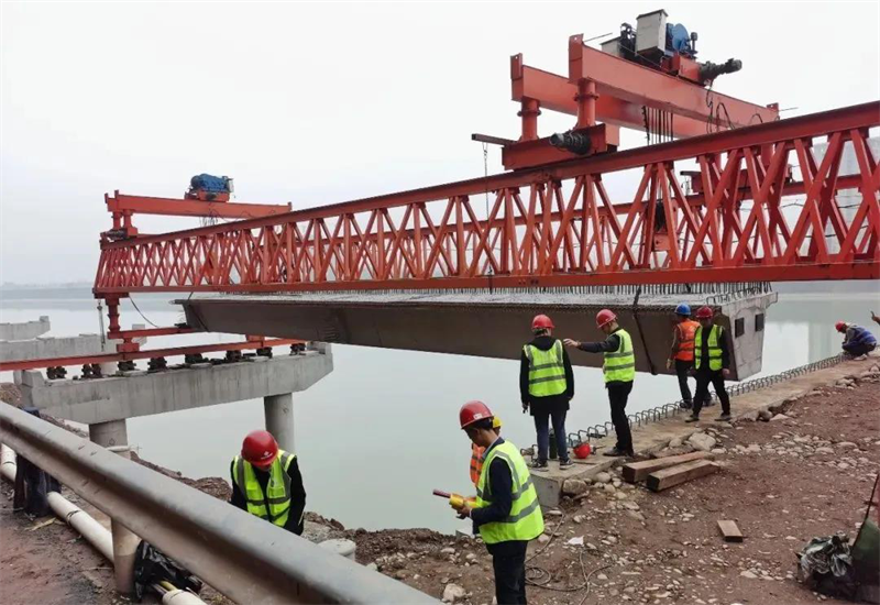 11月12日下午,省道104線草壩至姚橋段架橋機精準(zhǔn)地將長25余米、重100噸的首片箱梁成功架設(shè),標(biāo)志著省道104線草壩至姚橋段改建工程(巖板田大橋)上部結(jié)構(gòu)施工正式拉開帷幕。