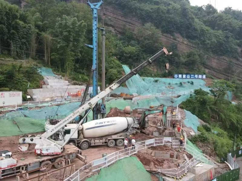 “咚咚咚……”在雨城區(qū)多營(yíng)鎮(zhèn)五營(yíng)村熊家山二號(hào)隧道出口端空地上,旋挖鉆機(jī)開(kāi)足馬力,朝著地層深處掘進(jìn),不斷發(fā)出富有節(jié)奏的聲響。“每個(gè)樁基有二十多米深!眹(guó)道318線名山區(qū)黑竹(成都界)至雨城區(qū)多營(yíng)段改建工程項(xiàng)目副經(jīng)理林洲,每天都要到各施工點(diǎn)位查看進(jìn)度。他說(shuō),熊家山二號(hào)隧道附近山體為順層帶,易產(chǎn)生滑坡,進(jìn)洞施工前需要先在洞外打抗滑樁,以確保施工安全,目前還在開(kāi)展剩下3根抗滑樁的施工。