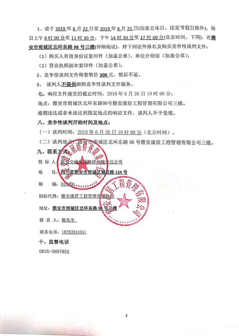 雅安交建集團路橋有限責(zé)任公司國道351線磽磧至夾金山路面改造工程防裂卷材采購競爭性談判公告