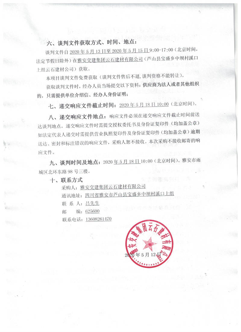 雅安交建集團(tuán)云石建材有限公司生產(chǎn)設(shè)備圓錐破采購項(xiàng)目競(jìng)爭(zhēng)性談判(第三次)公告