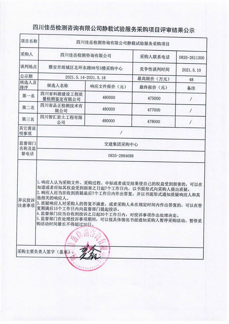 四川佳岳檢測咨詢有限公司靜載試驗(yàn)服務(wù)采購項(xiàng)目評(píng)審結(jié)果公示