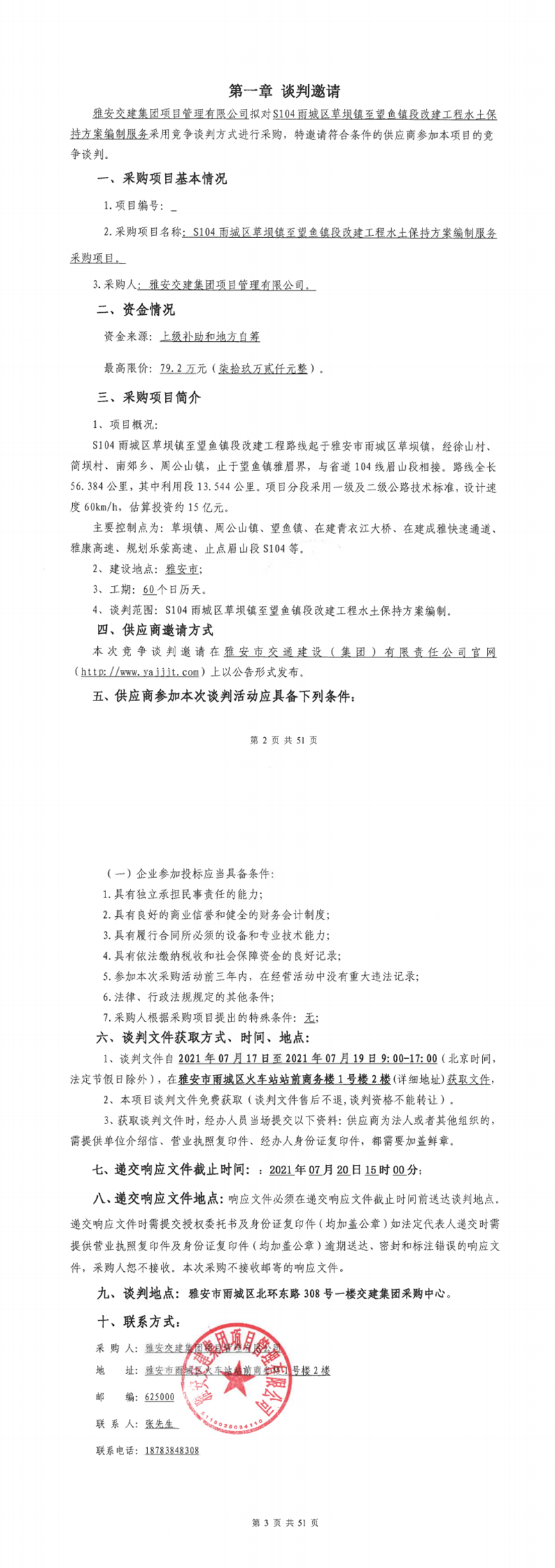 雅安交建集團項目管理有限公司S104雨城區(qū)草壩鎮(zhèn)至望魚段改建工程水土保持方案編制服務(wù)采購項目競爭談判公告