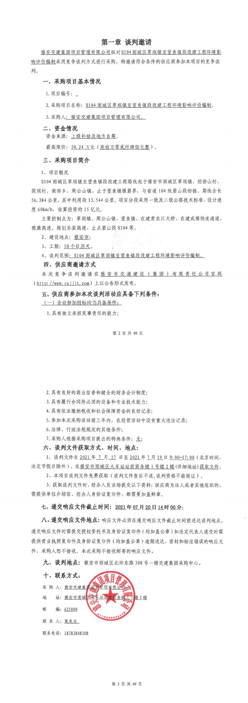 雅安交建集團(tuán)項(xiàng)目管理有限公司S104雨城區(qū)草壩鎮(zhèn)至望魚段改建工程水土保持方案編制服務(wù)采購項(xiàng)目競爭談判公告