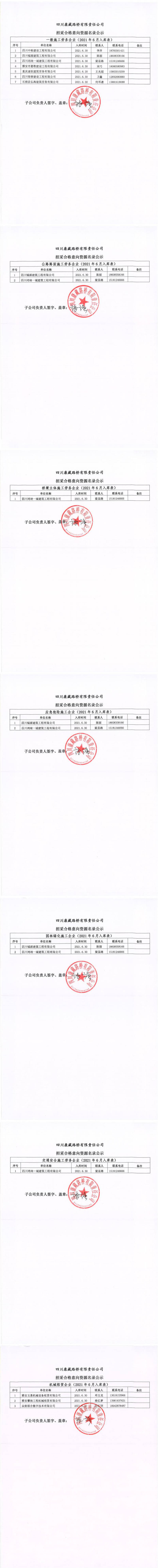 四川康藏路橋有限責任公司招采合格意向資源名錄公示