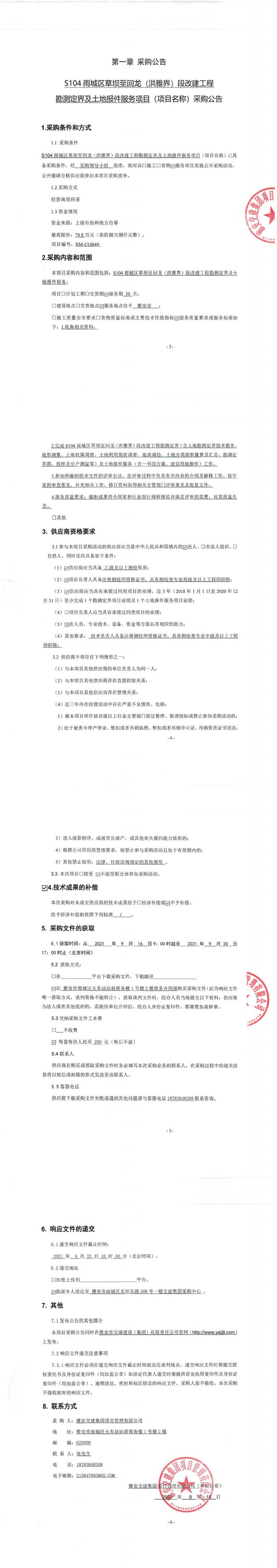 雅安交建集團(tuán)項(xiàng)目管理有限公司S104雨城區(qū)草壩至回龍(洪雅界)段改建工程勘測(cè)定界及土地報(bào)件服務(wù)項(xiàng)目采購(gòu)公告