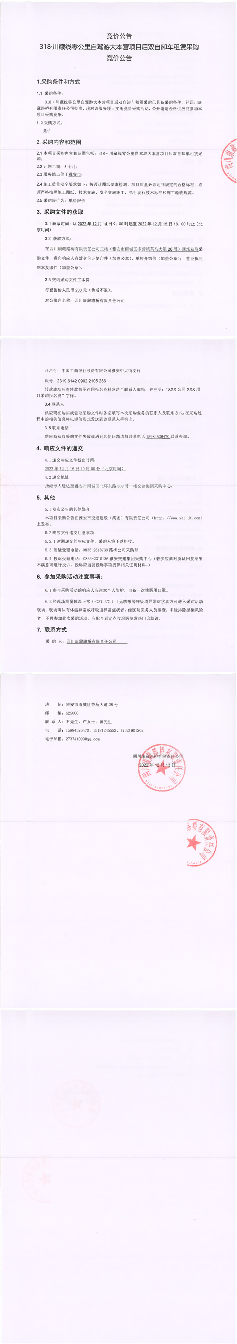 四川康藏路橋有限責(zé)任公司318.川藏線零公里自駕游大本營項(xiàng)目后雙自卸車租賃采購競價(jià)公告