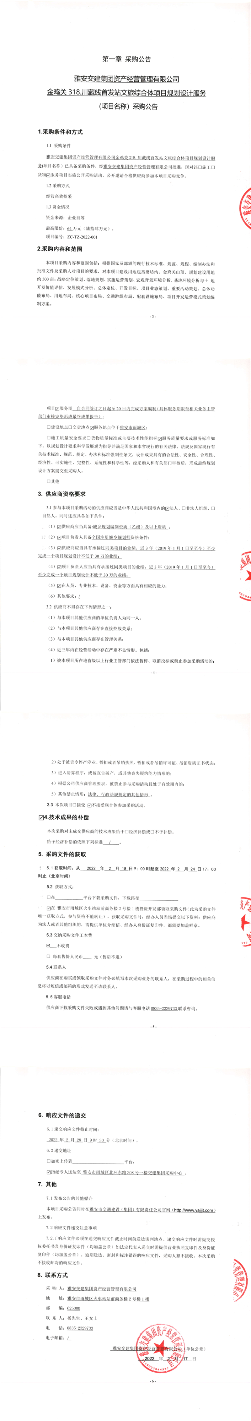 雅安交建集團資產(chǎn)經(jīng)營管理有限公司金雞關(guān)318.川藏線首發(fā)站文旅綜合體項目規(guī)劃設(shè)計服務(wù)采購公告