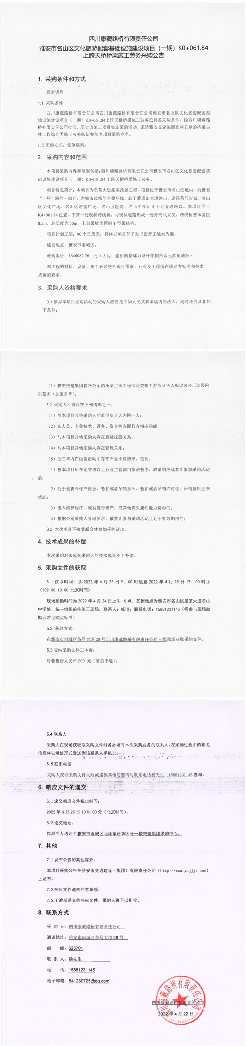 四川康藏路橋有限責(zé)任公司G318天全項(xiàng)目清水灣鋼管樁施工勞務(wù)采購(gòu)競(jìng)價(jià)公告