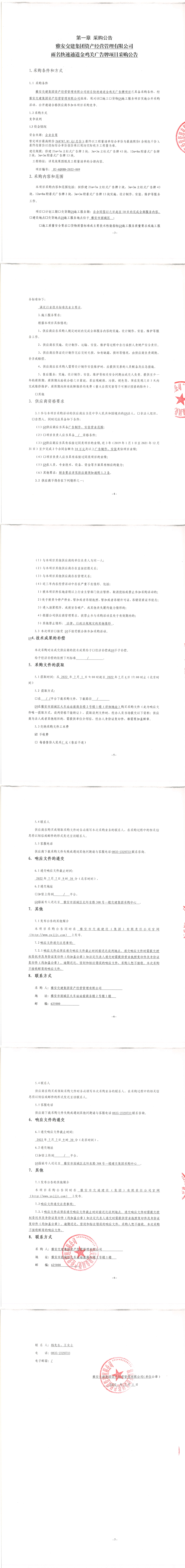雅安交建集團(tuán)資產(chǎn)經(jīng)營管理有限公司雨名快速通道金雞關(guān)廣告牌項(xiàng)目采購公告