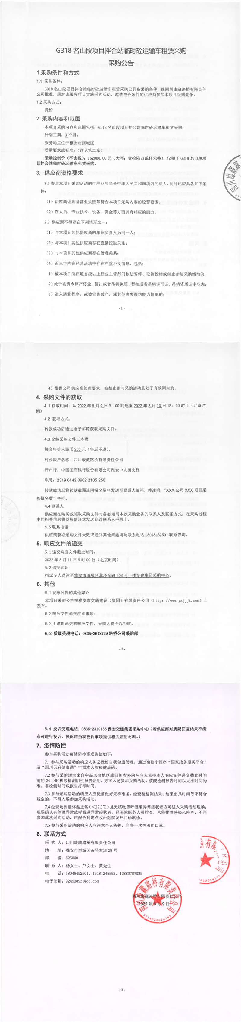 四川康藏路橋有限責(zé)任公司寶興縣農(nóng)材公路搶通修復(fù)工程(第一批)第一、二、三標(biāo)段施工勞務(wù)談判結(jié)果公示