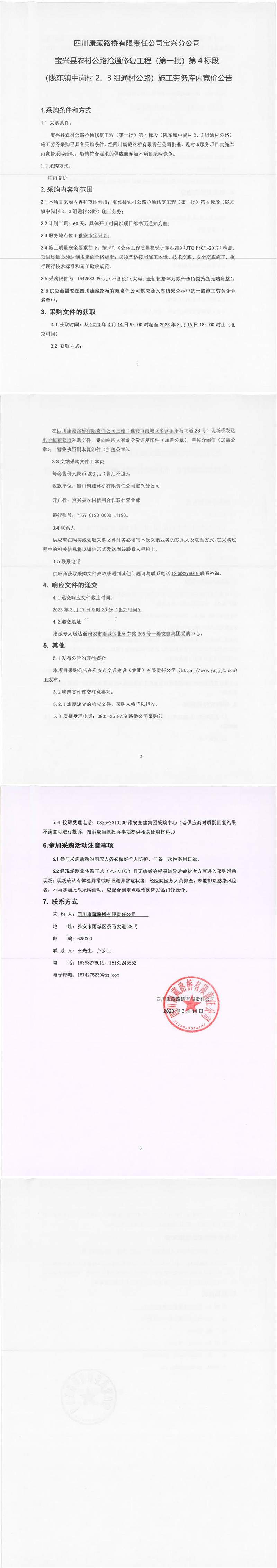四川康藏路橋有限責(zé)任公司寶興分公司寶興縣農(nóng)村公路搶通修復(fù)工程(第一批)第4標(biāo)段(隴東鎮(zhèn)中崗村2、3組通村公路)施工勞務(wù)庫(kù)內(nèi)競(jìng)價(jià)公告
