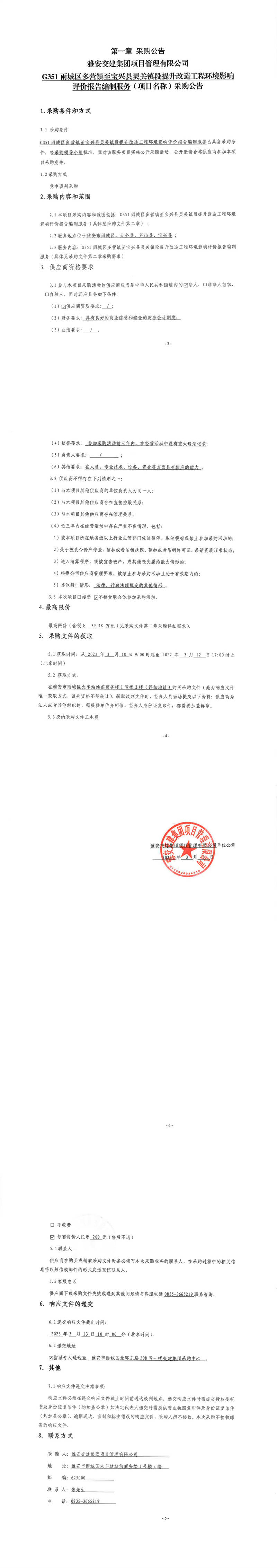 雅安交建集團(tuán)項(xiàng)目管理有限公司G351雨城區(qū)多營鎮(zhèn)至寶興縣靈關(guān)鎮(zhèn)段提升改造工程環(huán)境影響評價(jià)報(bào)告編制服務(wù)(項(xiàng)目名稱)采購公告