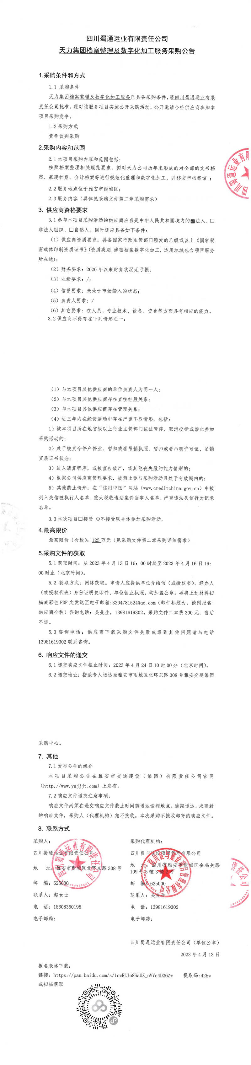 四川蜀通運業(yè)有限責任公司天力集團檔案整理及數字化加工服務采購公告