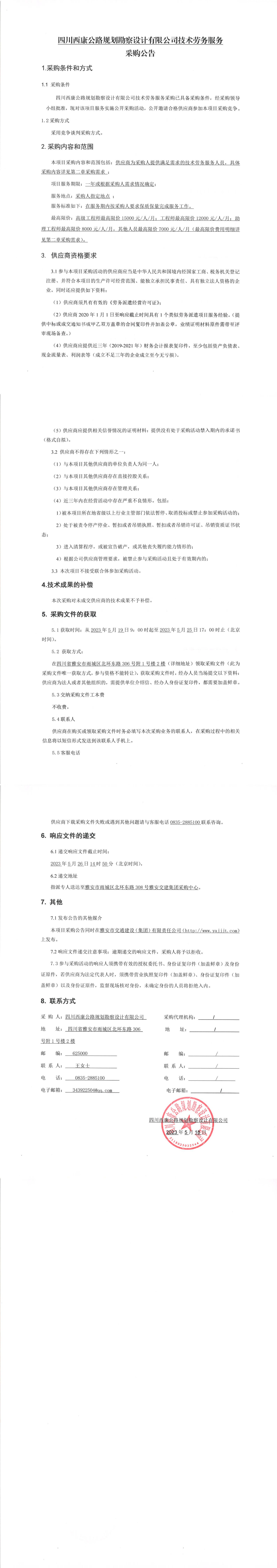 四川西康公路規(guī)劃勘察設(shè)計(jì)有限公司技術(shù)勞務(wù)服務(wù)采購公告