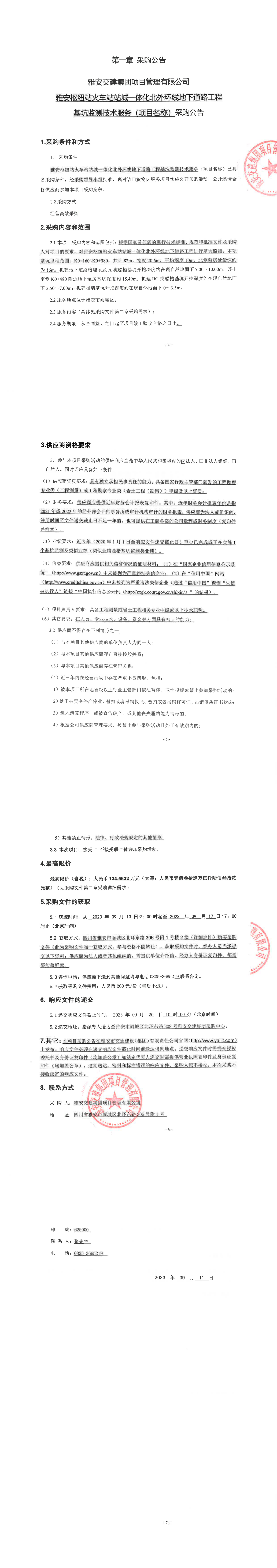 雅安交建集團項目管理有限公司雅安樞紐站火車站站城一體化北外環(huán)線地下道路工程基坑監(jiān)測技術(shù)服務(wù)(項目名稱)采購公告