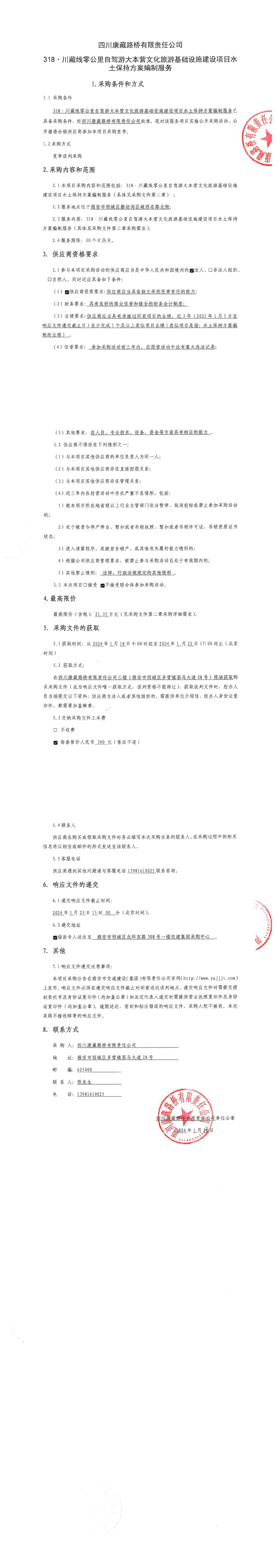 四川康藏路橋有限責任公司318·川藏線零公里自駕游大本營文化旅游基礎(chǔ)設(shè)施建設(shè)項目水土保持方案編制服務(wù)采購公告