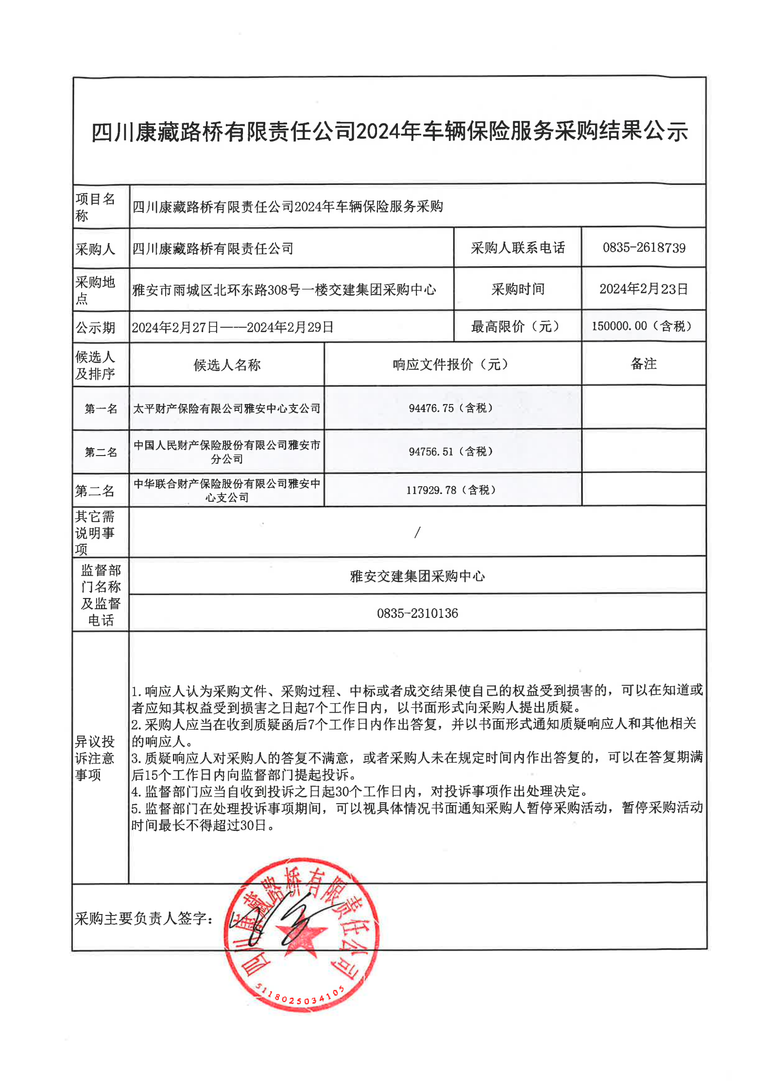 四川康藏路橋有限責(zé)任公司2024年車輛保險(xiǎn)服務(wù)采購(gòu)結(jié)果公示