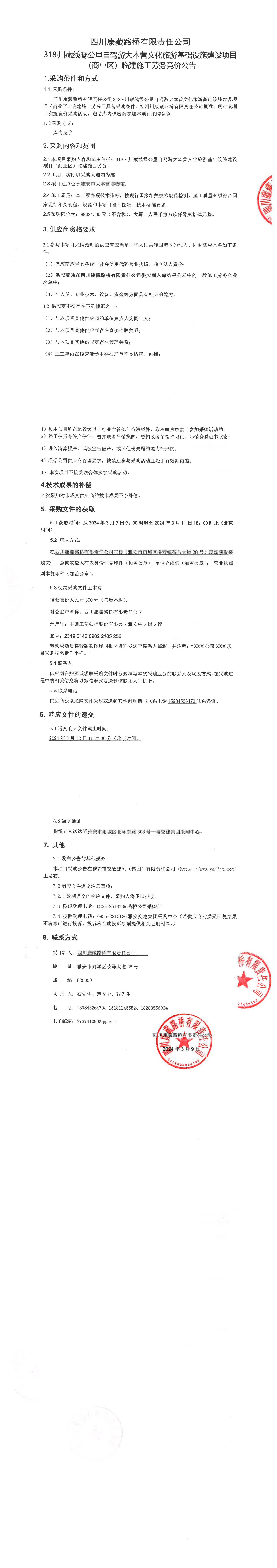 四川康藏路橋有限責(zé)任公司318·川藏線零公里自駕游大本營(yíng)文化旅游基礎(chǔ)設(shè)施建設(shè)項(xiàng)目(商業(yè)區(qū))臨建施工勞務(wù)采購(gòu)公告