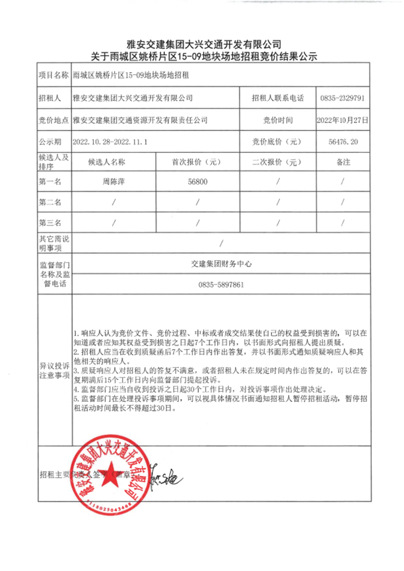 ÑŰ²½»½¨¼¯ˆF(tu¨¢n)´óÅd½»Í¨é_°l(f¨¡)ÓÐÏÞØŸ(z¨¦)Èι«Ë¾êP(gu¨¡n)ÓÚÓê³Ç…^(q¨±)Ò¦˜òƬ…^(q¨±)15-09µØ‰KˆöµØÕÐ×⸂ƒr½Y(ji¨¦)¹û¹«Ê¾