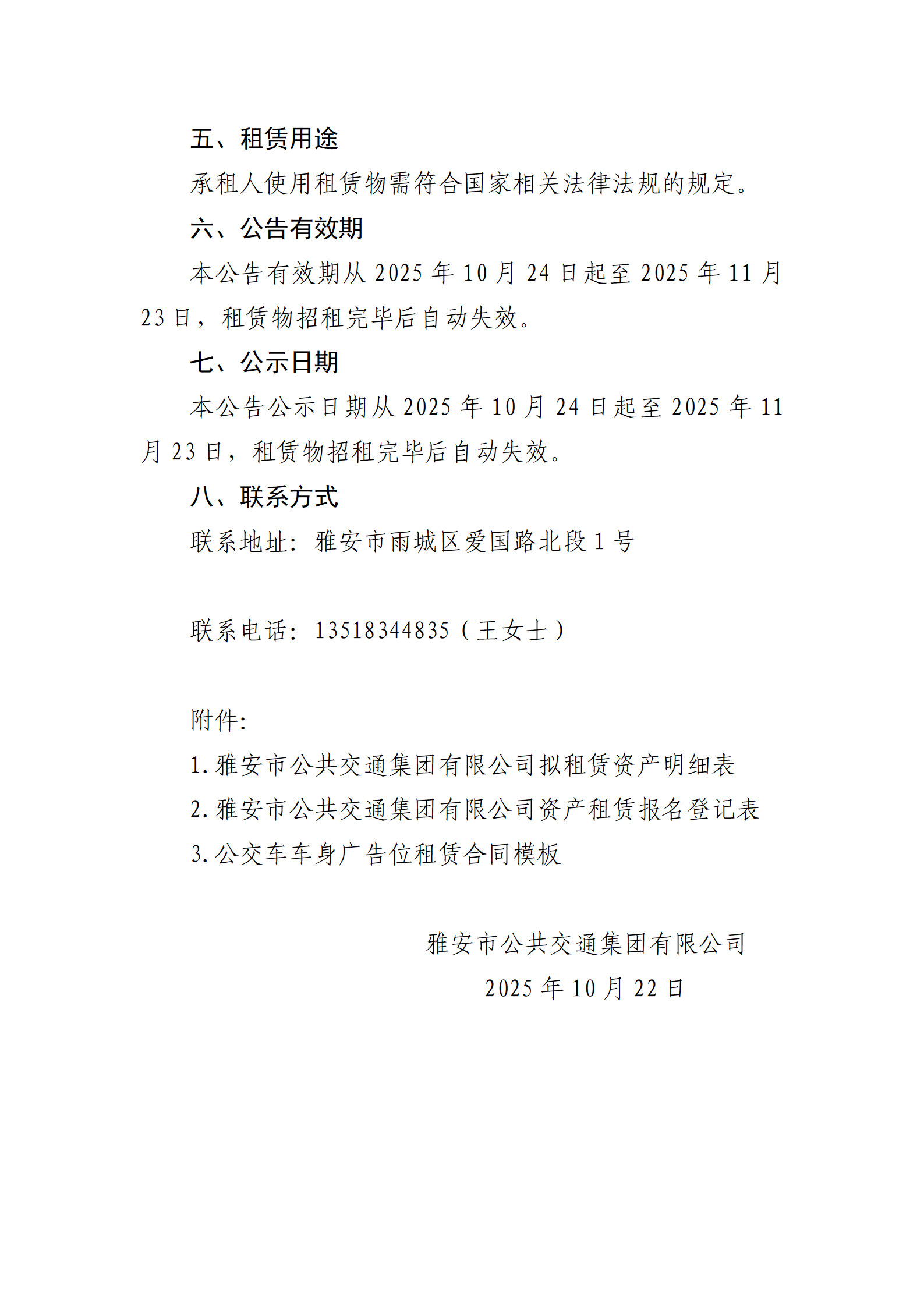 雅安市公共交通集團有限公司 關(guān)于150輛公交車車身廣告位整體掛網(wǎng)招租的公告