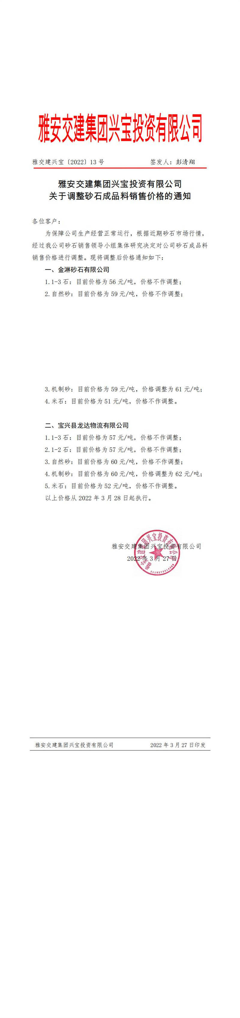 ÑŽ»½¨ÅdŒš¡²2022¡³13Ì– êP(gu¨¡n)ÓÚÕ{(di¨¤o)Õûɰʯ³ÉÆ·ÁÏäNÊÛƒr¸ñµÄ֪ͨ-3ÔÂ27ÈÕ